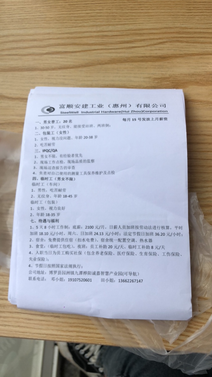 急招普工 qc 临时工