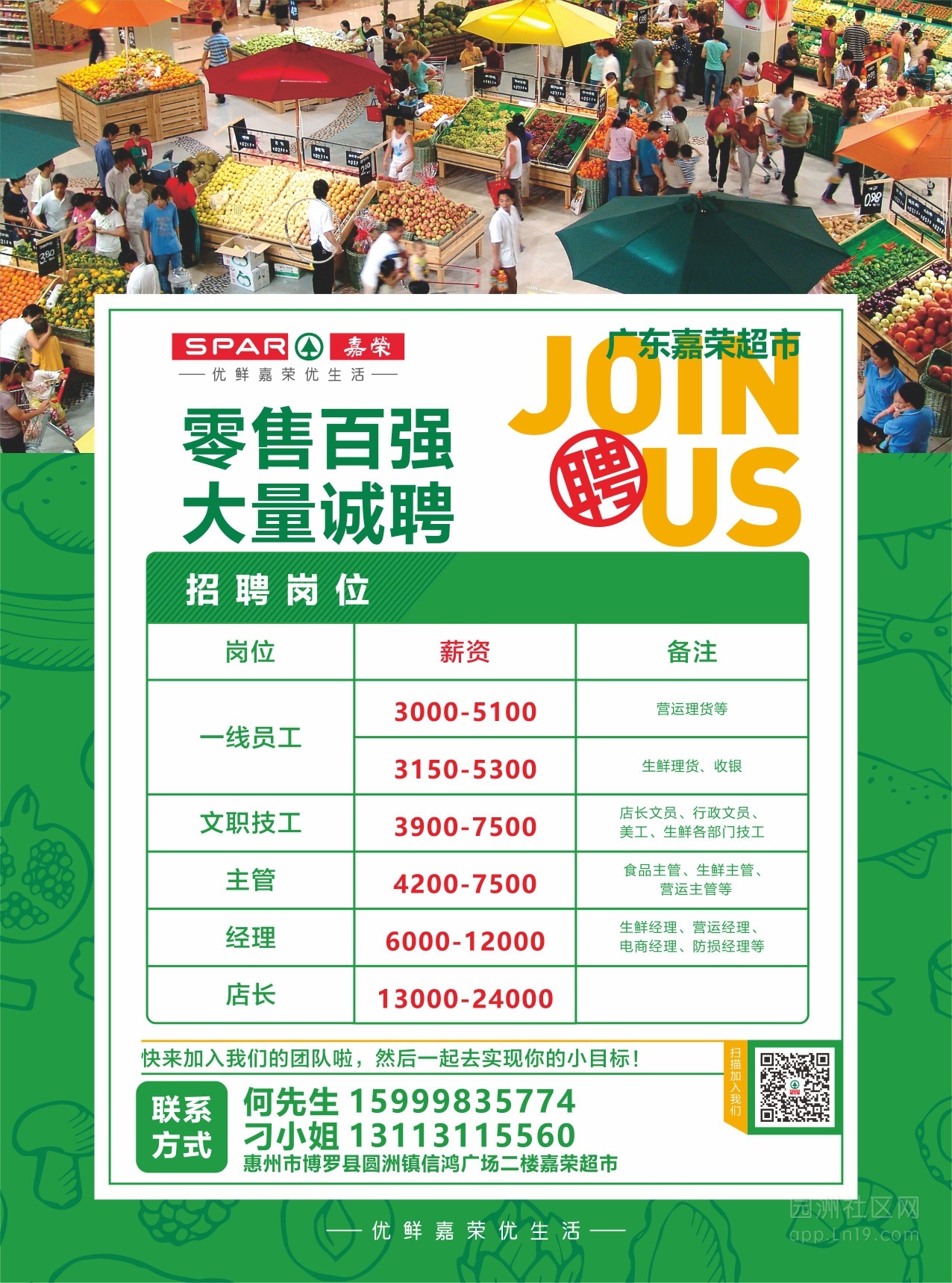 『嘉荣超市』惠州园洲信鸿广场店---“职”等你来!