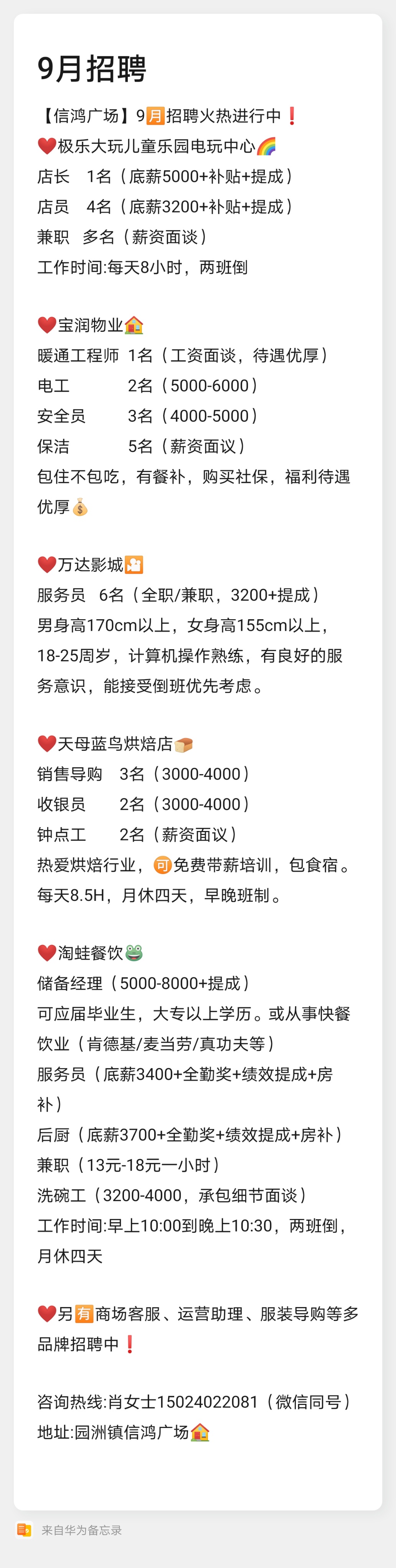 信鸿广场大量招人,全职/兼职都要!