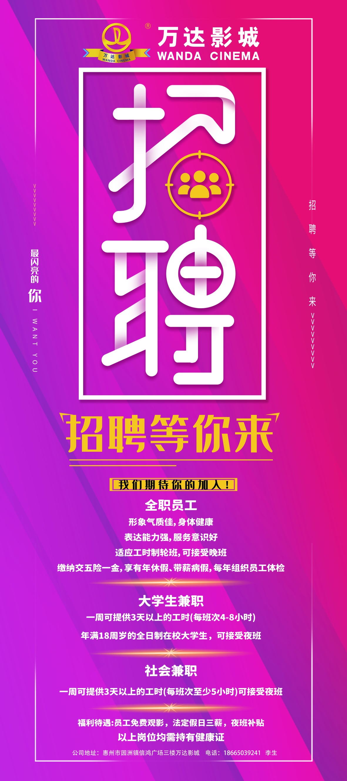 万达影城招聘员工