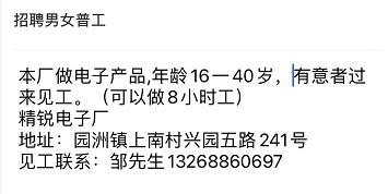 招聘男女普工