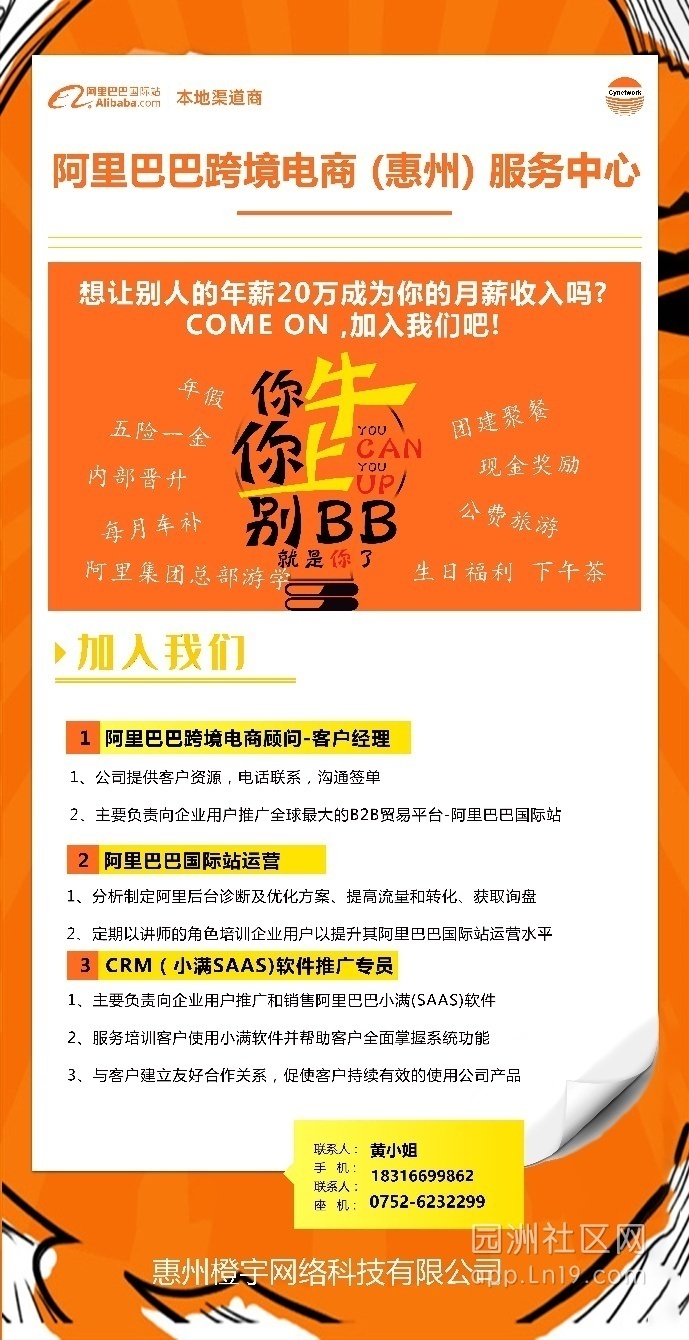 企业介绍:橙宇是阿里巴巴国际事业部合作伙伴,阿里巴巴跨境电商全国第六批合伙人、惠州北部地区和西部地区的唯一授权单位(负责博罗县、小金口街道办、龙门县、河源市);设有博罗园洲服务中心,惠北服务中心。