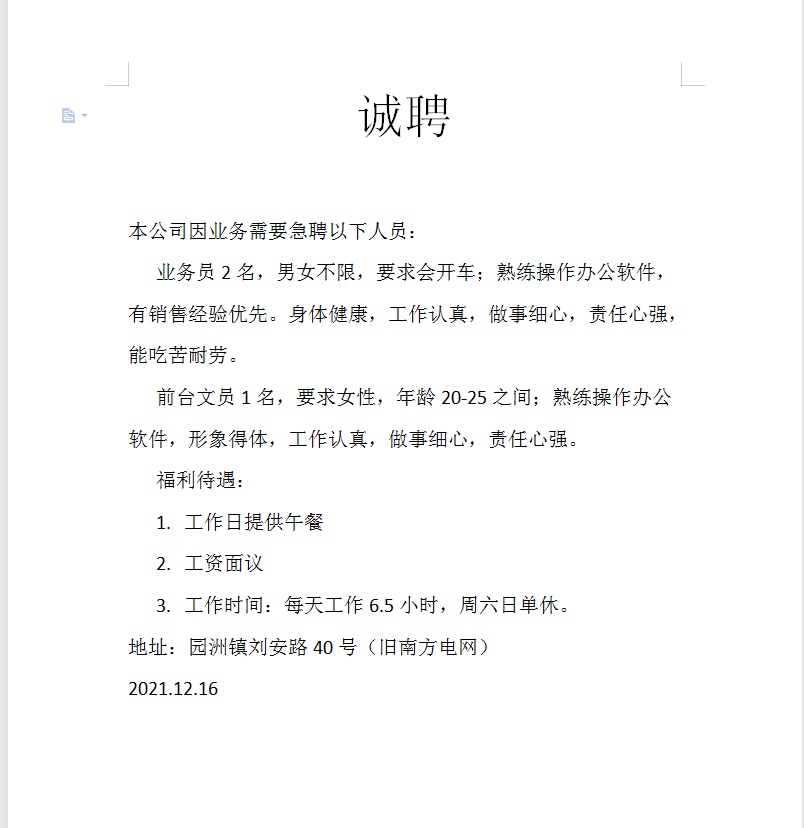 诚聘