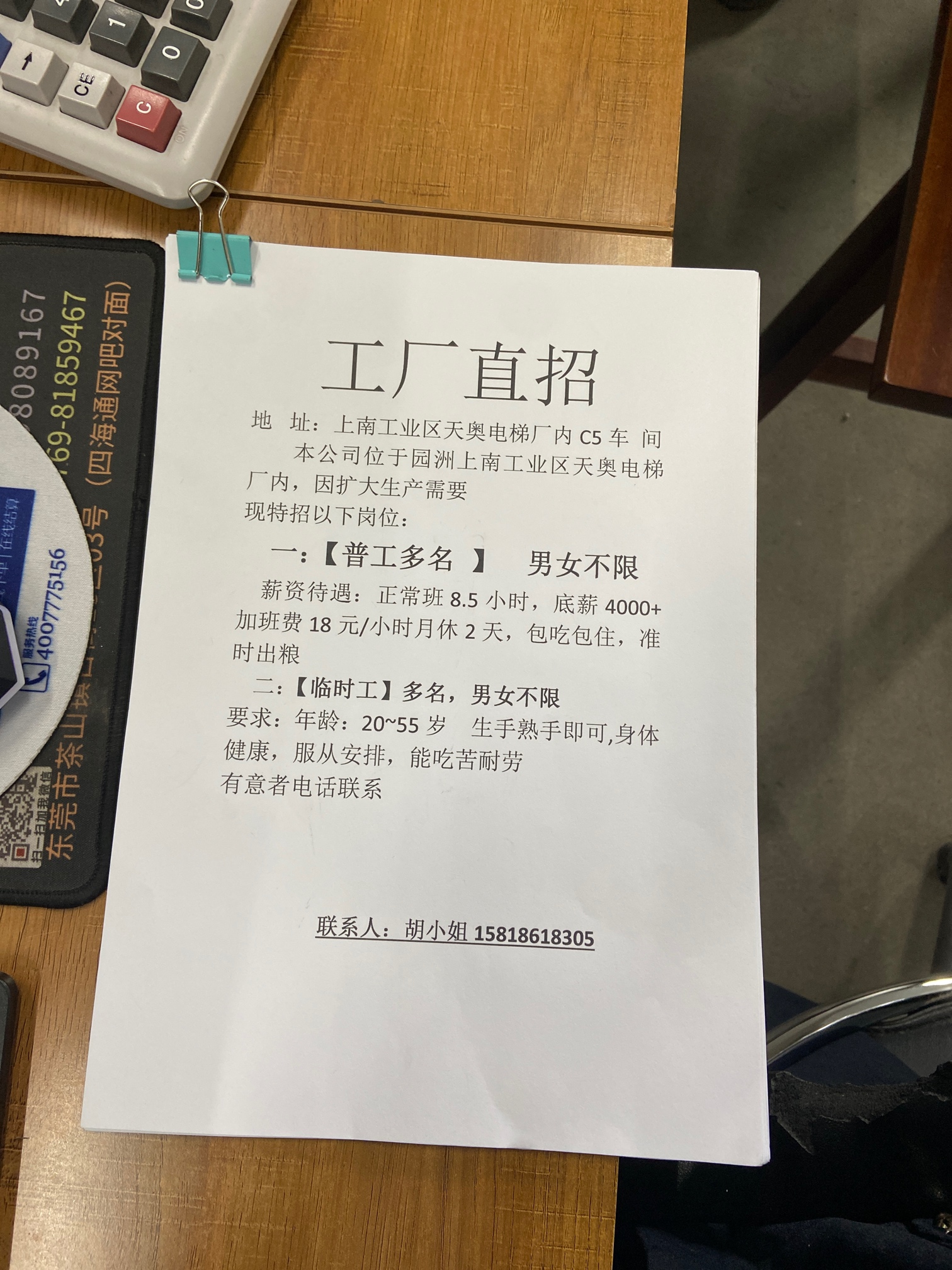 急招临时工:日结,周结,长期临时工,长期普工