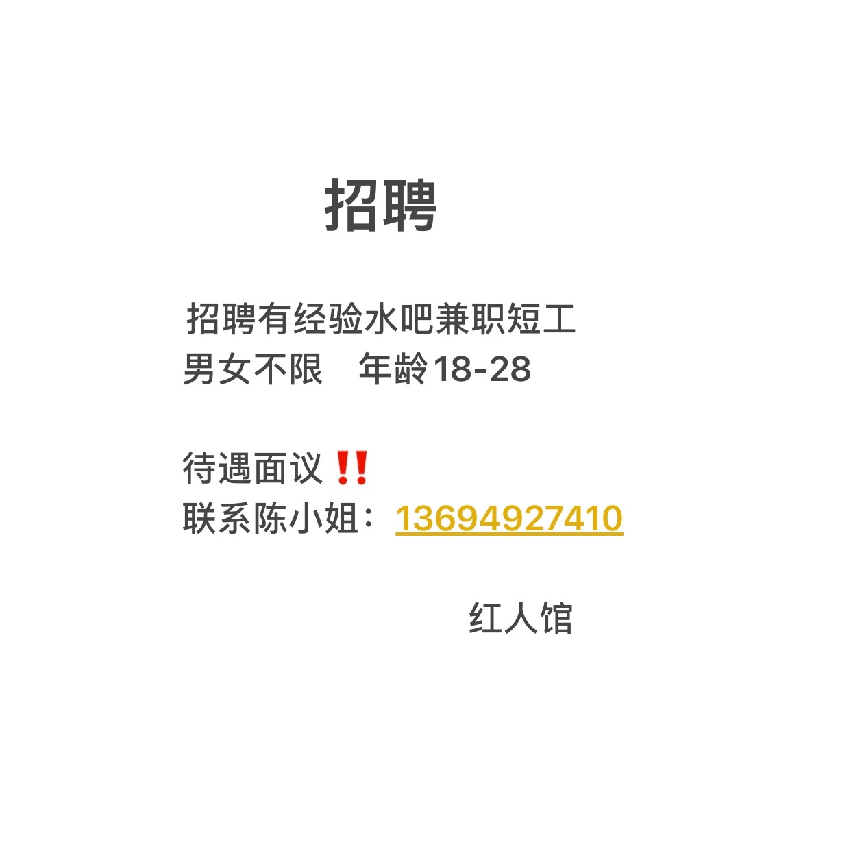 招聘有经验水吧兼职/短工