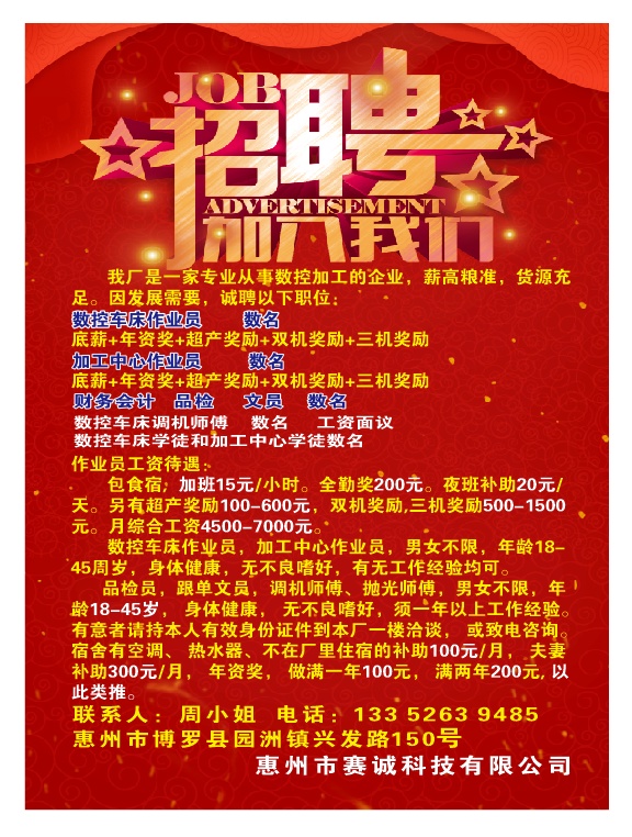 4.从事数控车床生产操机及相关工作3年以上;
