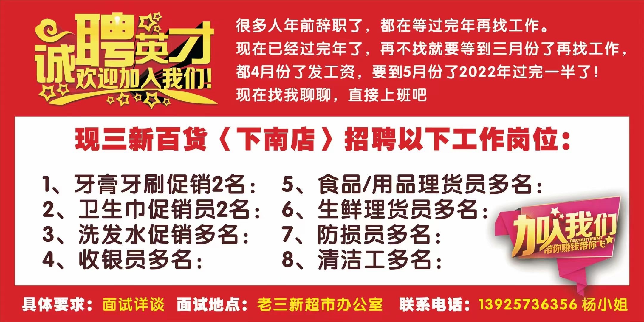 招聘以下岗位: