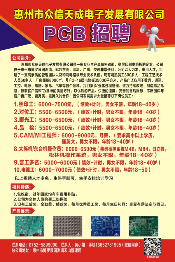 招普工多名,工资5500至7500包吃住,两班倒