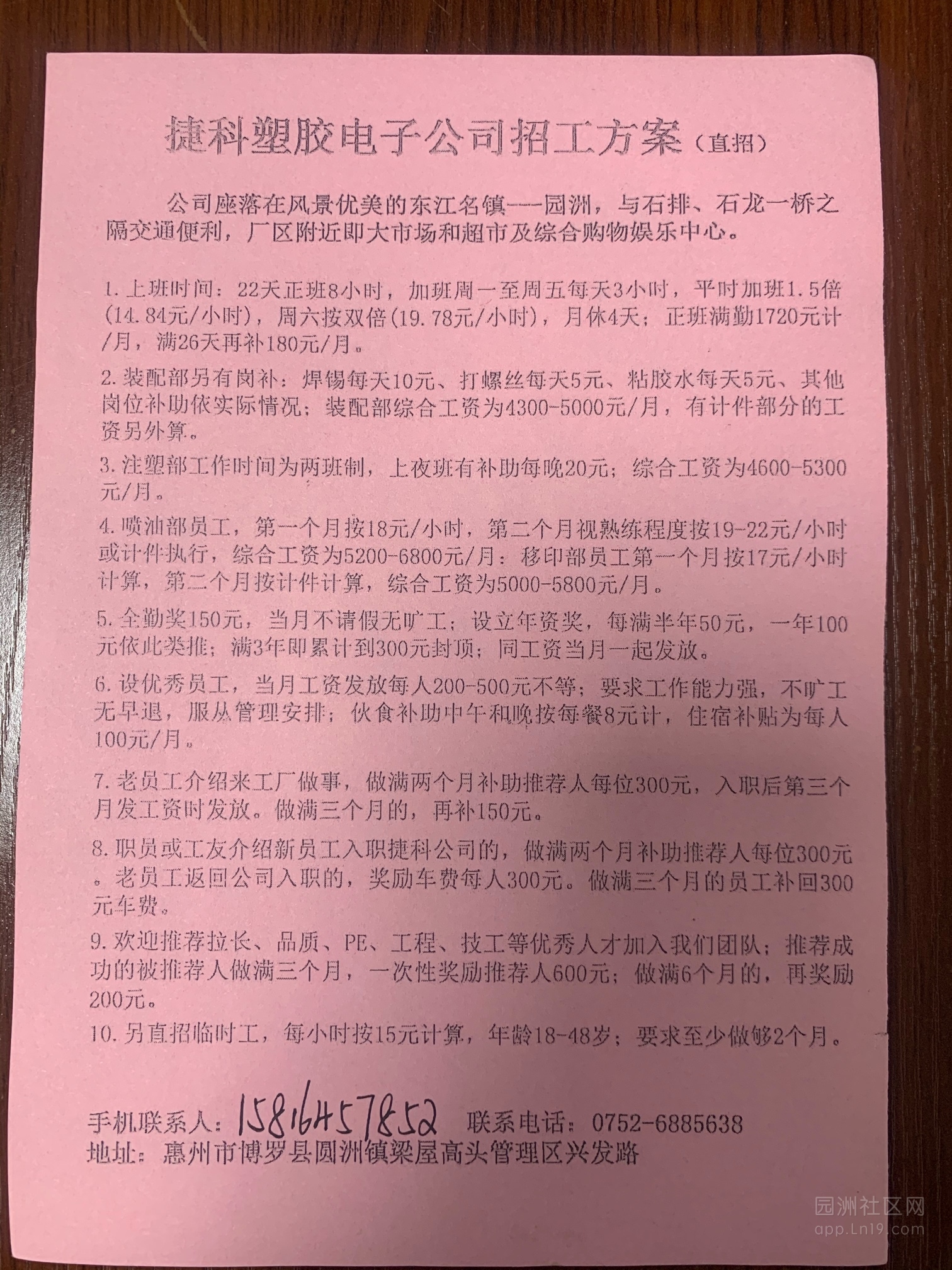 捷科塑胶电子公司招工方案(直招)