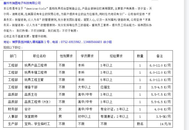 地址:博罗县园洲镇九谭鸿基路1号,电话:0752-6915982,13480566603 徐小姐