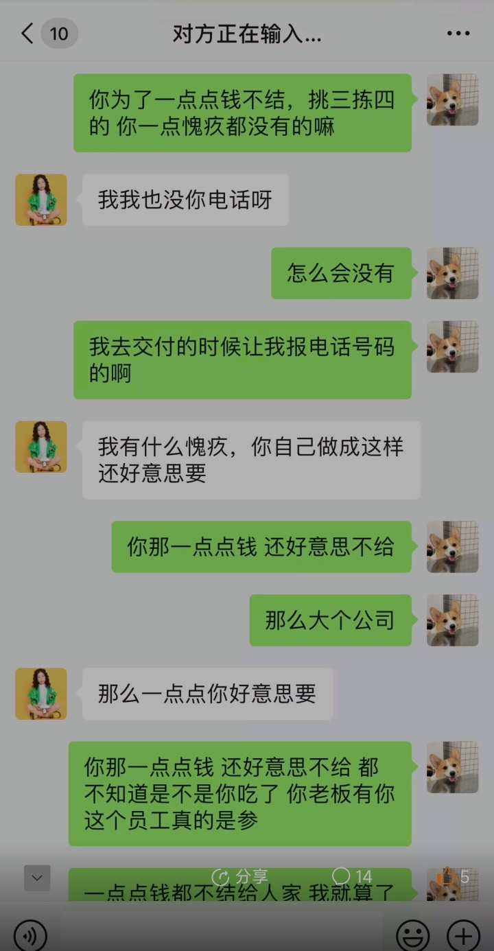 能主动找来领外发的人,我们在此表示感谢,基于对你的信任,拿出厂的物料才没有收你的押金,我们每天都在外发手工给不同的人做,现场教会再带回去,在约定时间内送回来,现场验收数量与品质没问题后财务付款,偶尔也存在有个别做的不好的,只要返工好我们都是第一时间结清手工费,你拿回去的200片叶子材料成本200多块,手工费共34元,送回来的东西做得乱七八糟不像样,还反过来说我们不付手工费?请问我们做了13年的工厂有必要赖你34元手工费?我主管有跟送来货的人讲需要反工,微信也有跟你沟通需要反工好才能结算,你拒绝反工且说不要手工费,就在社区曝光我们,请问支付劳动报酬是否得基于数量品质没有问题的前提呢?为了不影响出货短料,今天一个熟手员工返了一下午才返好,我主管有将返工视频发你微信上呀,我们损失又谁来承担?