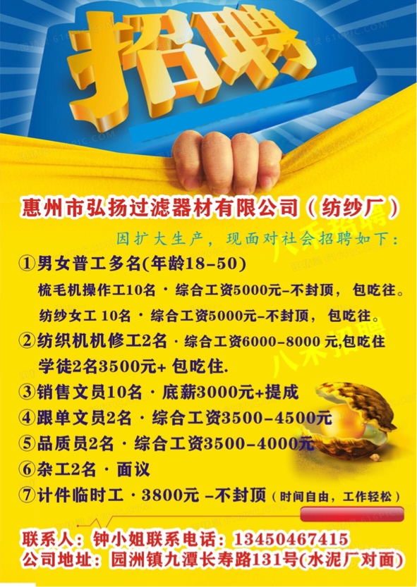 工作地址:广东省惠州市博罗县园洲镇九潭长寿路131号同富五金厂内(惠州弘扬过滤器有限公司)