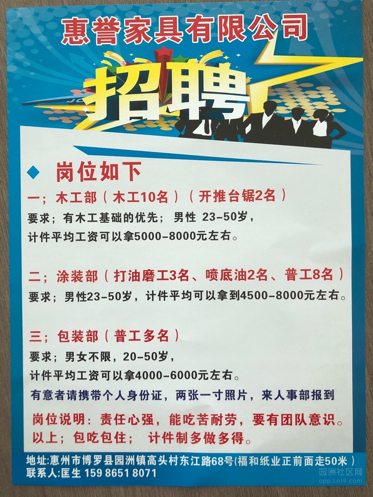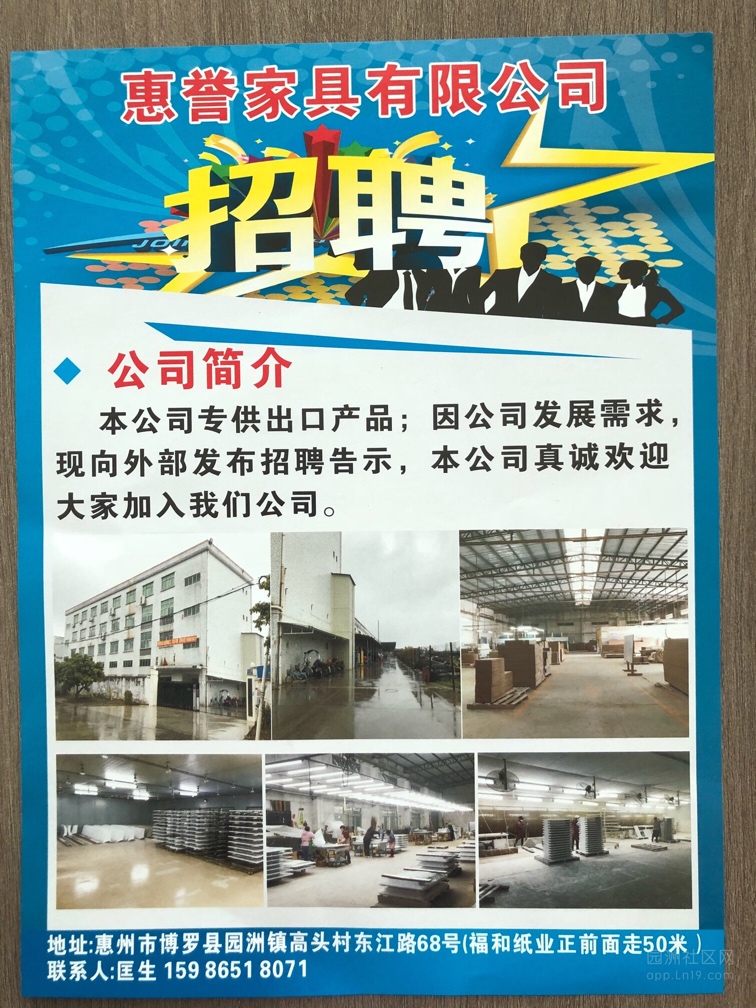 惠誉家具厂招聘会计,普工多名