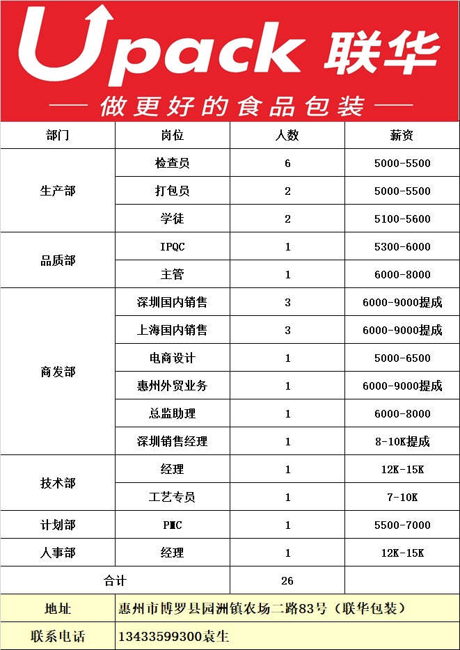 招聘热线:13433599300袁生