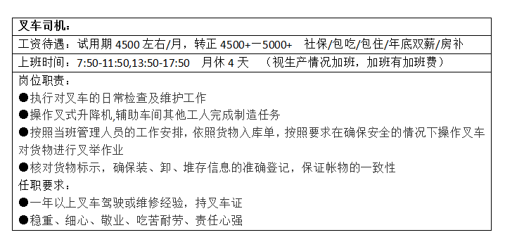 招聘叉车司机一名