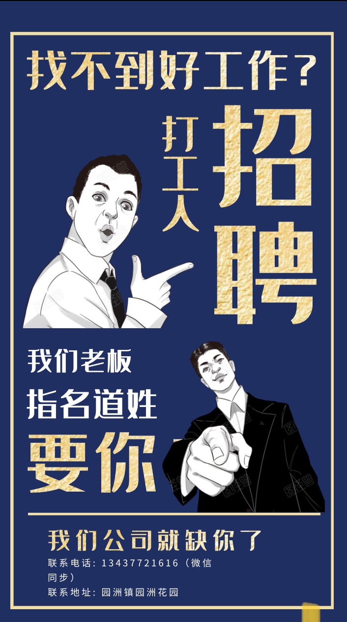 楼主,贵企业具体地址、企业名称跑丢啦?请纠正哦!凡发布商业类/招聘类信息,如不含具体地址+企业名称,一律删除/禁言哦!请参考平台发布规则:新手必看《审帖/删帖/禁言/金币/法规/侵权/申诉/客服》