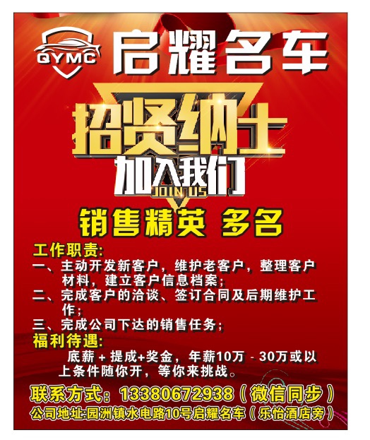 招汽车销售5名