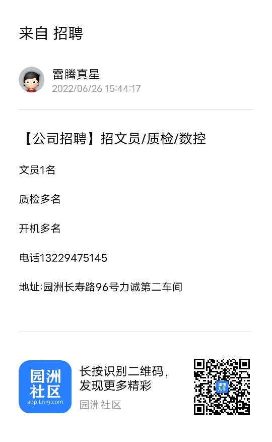 招聘文员/质检/数控