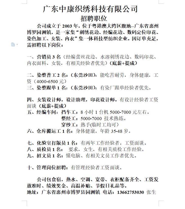 招聘 招聘以下岗位有需要的可以联系