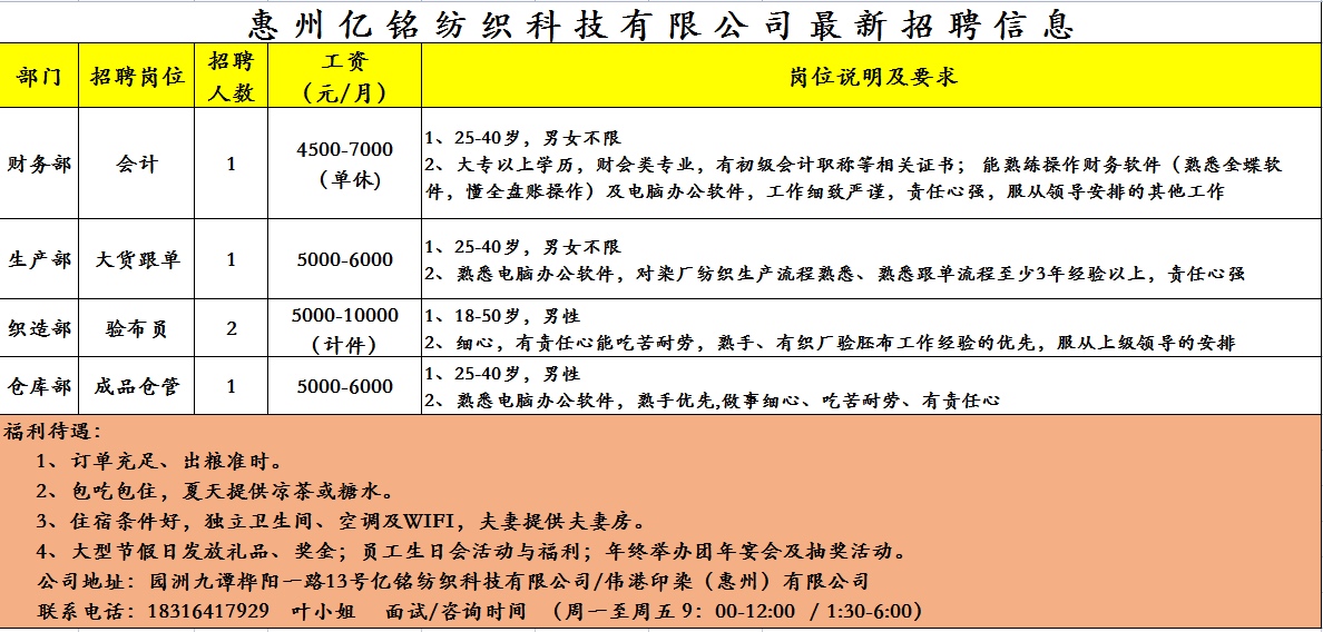 招聘会计、大货跟单、仓管、胚布验布员等……需熟手