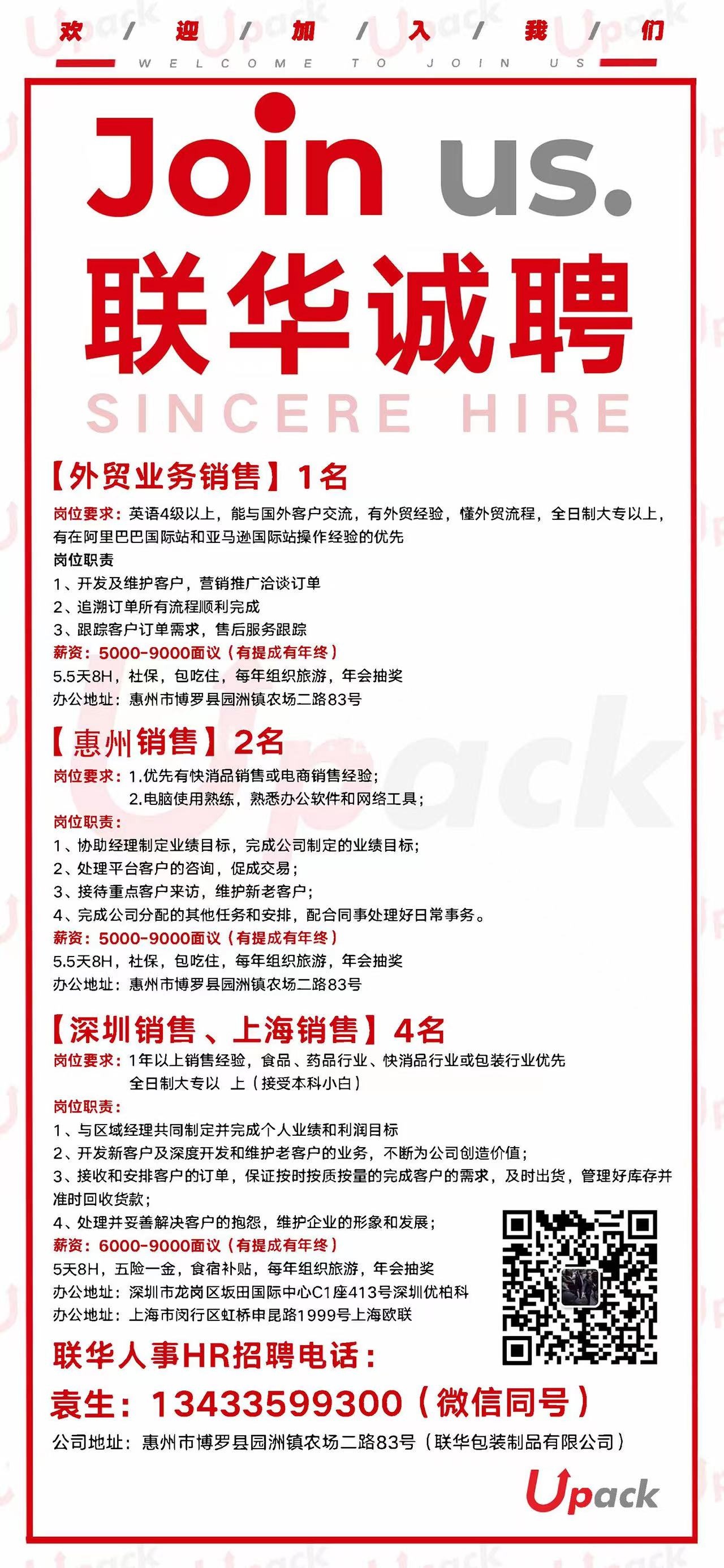 联华人事HR招聘电话13433599300袁生(微信同号)